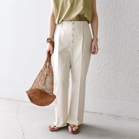〈手洗い可能〉フロントボタンセミフレアパンツ white◇