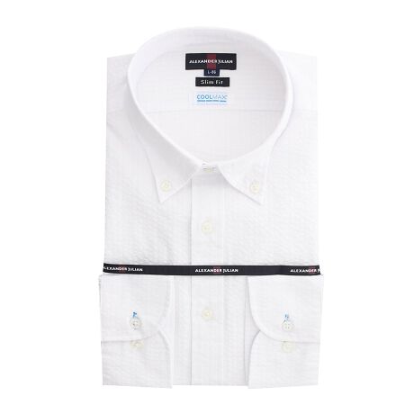 クールマックス/COOLMAX シアサッカー スリムフィット ボタンダウン長袖シャツ