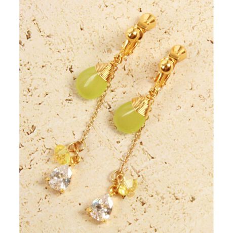 ワイスチャームの【5月誕生石アクセサリー】グリーンジェイド×ガラスドロップチャームイヤリング。