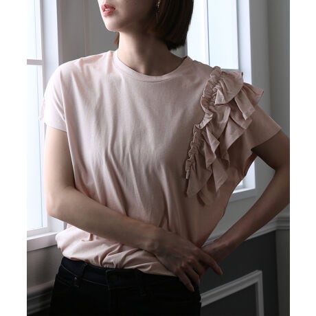 アシンメトリーフリルTシャツ