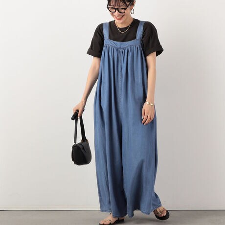 ・ワイドシルエットのパンツ部分が特徴的な1着