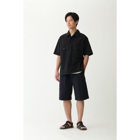 [型番:5961150550]タフなコットンリネン素材を使用したプルオーバーシャツ。特徴的な衿型と、胸ポケット部分の切り替えがデザインのポイント。※こちらはメンズの商品です。