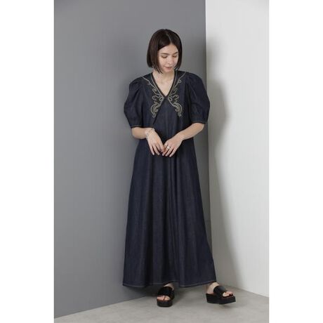 フェミニンな中に大人っぽさもある刺繍カラー付きのフレアワンピース。シルエットにこだわったきれいなラインが1枚でおしゃれに決まるアイテムです。襟は取り外しができるので雰囲気を変えて楽しめます。子供っぽくならないよう襟の開きを深めにしてデコルテラインを出したのもこだわりのポイントです。袖の形も甘くなりすぎないようにタックとダーツを組み合わせています。※こちらの商品は水や雨に濡れたり、汗による湿気・乾燥状態での摩擦により、薄い色の衣服などに色落ち・色移りする可能性があります。ご使用の際にはご注意くださいますようお願い致します。