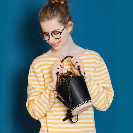 底面にエスパドリーユの麻を使用し、口元には秋冬の素材を使用した季節感をミックスしたトレンド感のある冬かごバッグです。