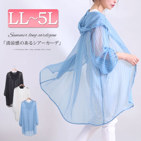 【LL-5L】シースルーロングカーディガン 大きいサイズレディース カーディガン 羽織り