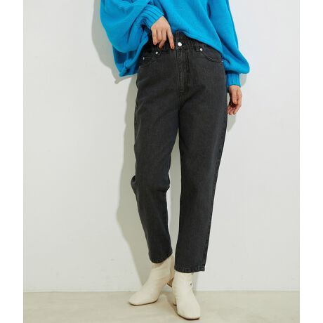 ウェストギャザーデニム&ツイルテーパードパンツ