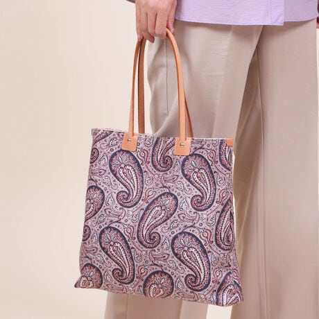 ペイズリープリント 日本製牛革ハンドルトートバッグ