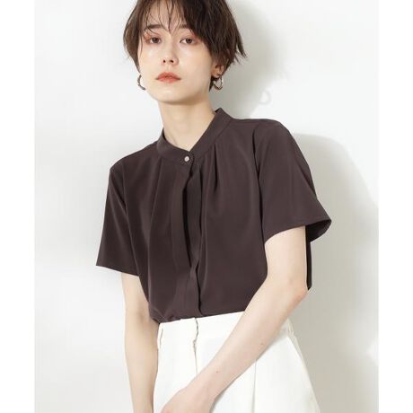 スタンドカラーフロントタック半袖ブラウス