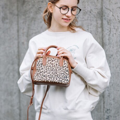 牛革ハラコタイプの革を贅沢に使ったラウンド2wayボストン。