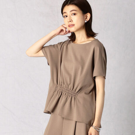 前後にゴムシャーリングを寄せ、スッキリとした印象に。