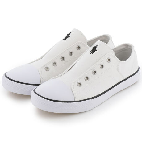 [型番:POLO-11057]アッパーのブランドモチーフがポイント。個性的なノーシューレースデザイン。スリッポンタイプで脱ぎ履きらくらく