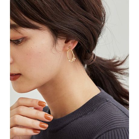 ・ニュアンスのあるフォルムのメタルリングに、クリアカラーのビーズをあしらった夏らしいピアス。