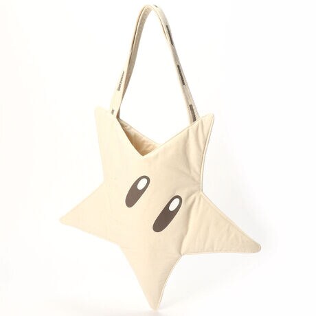 ゲームでも人気のキャラクター「キノコ」と「スター」を大胆にもかたどったデザイントートはバッグ自体に中綿を入れ、ふんわりとした立体感をつくっています。もち手には「スーパーマリオ」のロゴをモノクロで入れ、肩や手に持った際のさり気ないポイントに。片方は目のプリントを入れ、大きなキャラクターを持ち歩いているような雰囲気に仕上げ。別側は小さな刺しゅうがさり気なく入っていて、シンプルな中にもアクセントが効いています。持ち歩くたびに楽しくなるゲームの世界観に入り込んだような楽しいアイテムになっています。