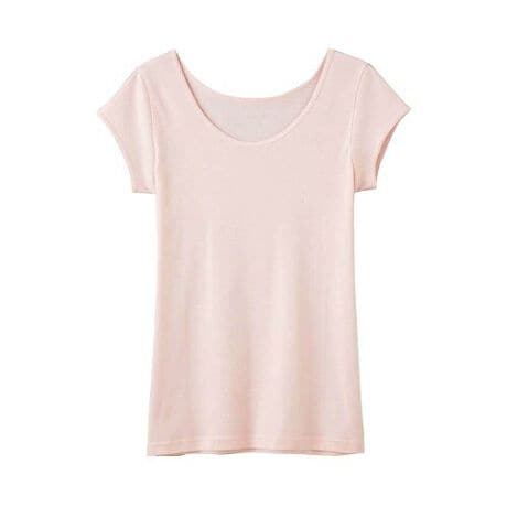1年通して着用できる本体コットン100%素材のフレンチ袖インナーは、ワードローブと相性の良いシンプルなシルエット。短袖なので、袖が短めのアウターでも着こなしができます。身頃には脇はぎが無いので、ごろつきにくく、肌への刺激を軽減します。コットンのやさしい着心地をより実感できます。