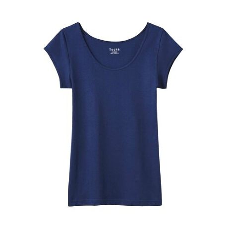 1年通して着用できる本体コットン100%素材のフレンチ袖インナーは、ワードローブと相性の良いシンプルなシルエット。短袖なので、袖が短めのアウターでも着こなしができます。身頃には脇はぎが無いので、ごろつきにくく、肌への刺激を軽減します。コットンのやさしい着心地をより実感できます。