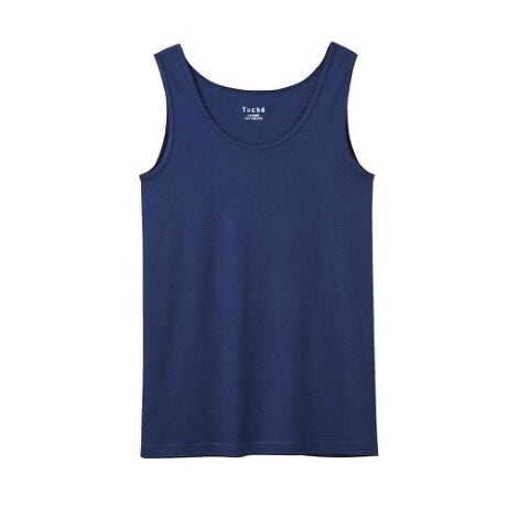1年通して着用できる本体コットン100%素材のタンクトップは、ワードローブと相性の良いシンプルなシルエット。身頃には脇はぎが無いので、ごろつきにくく、肌への刺激を軽減します。コットンのやさしい着心地をより実感できます。