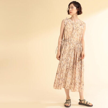 Ray BEAMS / プリント プリーツ ノースリーブ ワンピース