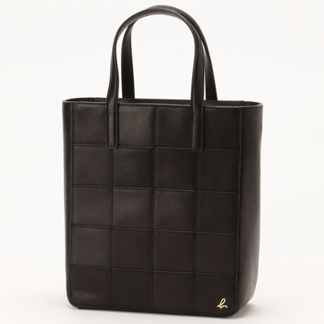 格子柄のレザーパッチワークがポイントのトートバッグ。