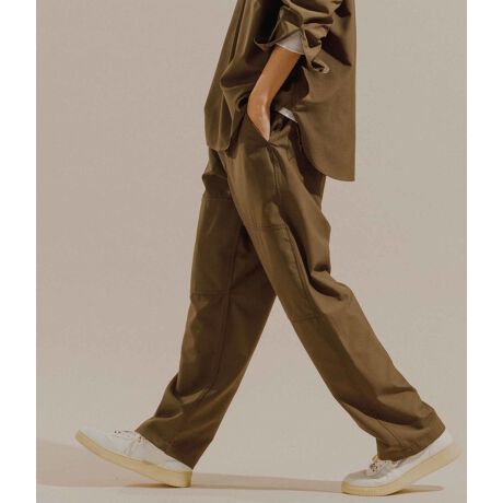 「着こなしに鮮度を加える、メンズワードローブとして1本は加えたいダブルニーパンツ。太過ぎないテーパードシルエットで足元を選ばない1本」