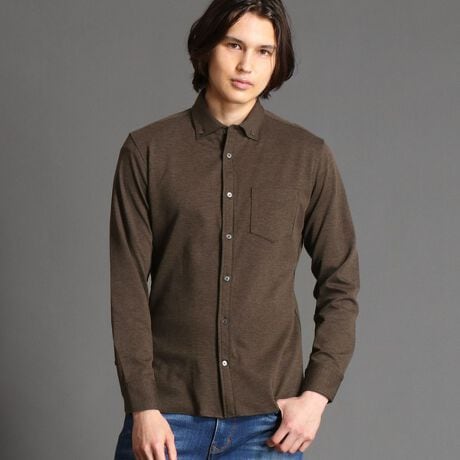 国産ダブルジャカードニットを使用したボタンダウンセミワイドカラーシャツ
