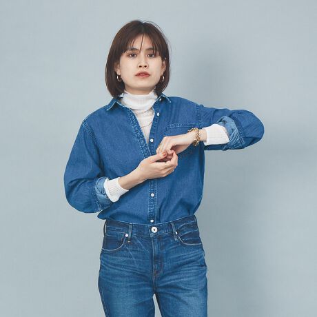 8ozの厚手デニムでメンズライクに仕上げた一枚。