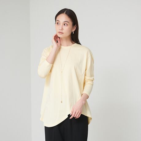 アシンメトリーな裾が目を惹くロング丈カットソー。