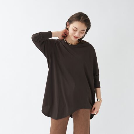 アシンメトリーな裾が目を惹くロング丈カットソー。