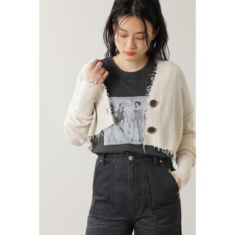 1枚羽織るだけでこなれ感あるスタイリングに決まるショート丈のカーディガン