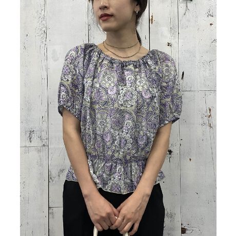 インド綿で仕上げた2wayブラウス涼しげなインド綿とエスニック柄が目を惹く前後着用可能なブラウス◎デコルテラインをキレイに見せてくれるブラウスは、華奢なリボンをあしらい、衿ぐりの広さを調節できるようなデザインにしました◎同シリーズ(PE0857)と合わせてワンピース風に着こなすのもオススメです。 伸縮性:なし 透け感:なし
