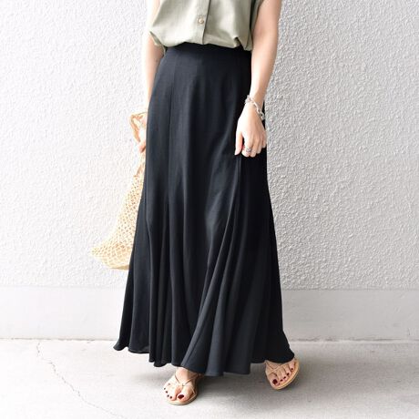 〈手洗い可能〉リネンミックス切り替えフレアスカート◇
