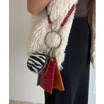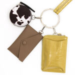 カードケース、レター型ポーチ、丸型ミニポーチがリングに装着でき、ショルダーバッグとして使える3連バッグ。