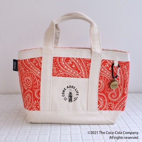 「コカ・コーラ」のイメージに合わせたペイズリー柄のデザインが可愛らしいランチバッグ。