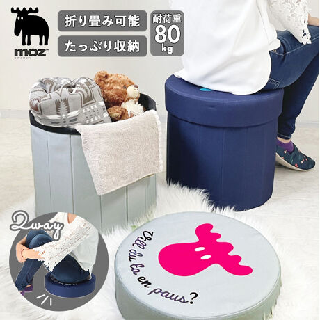 北欧ブランドのmoz(モズ)から、中にたっぷり収納できる「丸型折畳みスツール」が発売。丸いフォルムがかわいらしい、ボックス型のスツール。座面を開けると中は収納スペースに!使わないときはコンパクトに折りたたむことができ、さらにシートクッションとして使用することも可能な2way仕様♪簡単に組み立てられるから、使いたいときにサッと設置できて場所をとらないのも嬉しいポイント。座面部分にはクッション性の高いウレタンフォームを使用。耐荷重は80kgと丈夫で安心。「moz」のキャラクター・エルク(へラジカ)モチーフのプリントがほっこりと可愛い♪