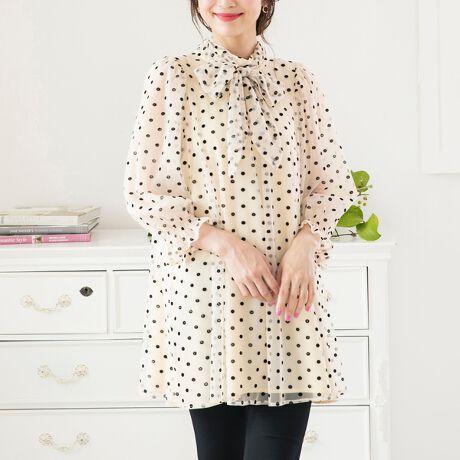 軽やかなチュールにフロッキードットが可愛いバックリボンブラウス