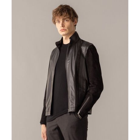 ジョゼフ オムのライトレザーブロック ブルゾン。