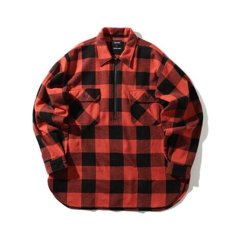 クラシカルなチェック使いとルーズなシルエットが新鮮なプルオーバーシャツ。程よい厚みのフランネル生地はレイヤード使いに最適です。古着によく見られるクラシカルなディテールを踏襲しつつも、ルーズながら随所にメリハリのあるフィット感を持たせる事でトレンド感のある着こなしをお楽しみいただけます。