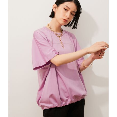 アメフトTシャツをベースにデザインした切り替えと、太番手の糸で施した配色ステッチが魅力のTシャツ。裾をコードゴムとストッパーで絞って着用したり、そのまますとんと着用したりと、気分でシルエットに変化を加えられるのも嬉しいポイント。着用すると程よくフレアなシルエットを描く袖デザインも◎