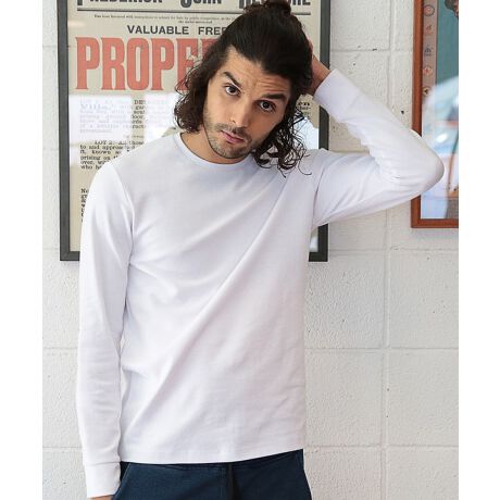 ストレッチ性の高い生地で作られたベーシックな長袖のクルーネックカットソーです。