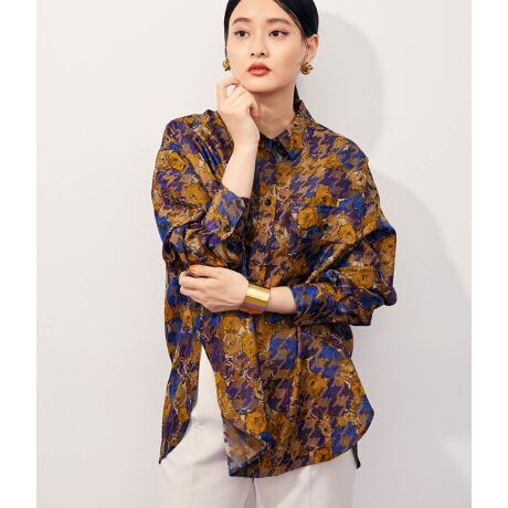 【奥行きのある素材感が魅力。コーディネートの主役になること間違いなしの総柄シャツ】