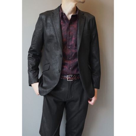 カットソー素材でお作りした二つ釦タイプのラペルジャケットです。ラペルの大きさと位置を変える事で少し大人っぽい印象に仕上げました。生地にはDELEGANTというスーツ生地メーカーが企画したポンチ素材を採用。スーツ生地メーカーならではの洗練された風合いと、熟練の技術を活かした優れたストレッチ性が快適な着心地を提供してくれます。