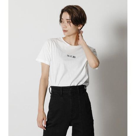 2021Autumn&Winter item・薄手で柔らかさがあり着心地のいいコットン素材を使用しています。・あなたと私と言う意味の小ぶりなロゴデザインのTシャツです。・ジャストシルエットが女性らしいシルエットを演出。<コーディネート>・スリットデニムでトレンドライクなスタイルに。・フレアーのワンウオッシュデニムと合わせてデニムライクなスタイルに。