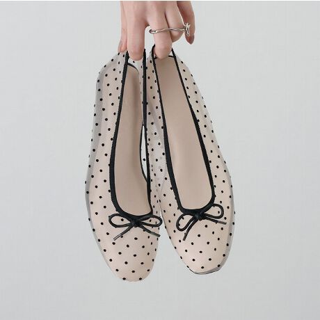 ・人気のバレエシューズにチュールにドット柄のフロッキープリントを施したブラックドットと花柄チュールのアイボリーコンビが仲間入り