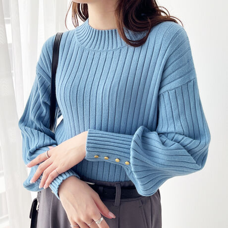ボタン付パフスリーブモチモチニット