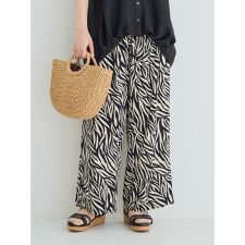 ツイード見えする秋冬素材の上品ワイドパンツ。フロントファスナータイプは腰回りすっきり!後ウエストゴムでラクなはき心地。