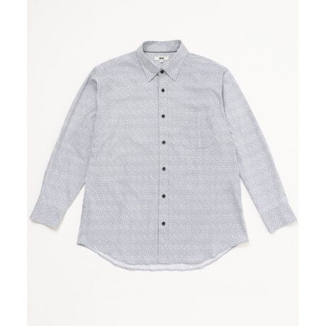 ■アイテム説明細番手の糸の横編みのスムースニット素材のシャツです。洗濯収縮が少なく、ウォッシュ&ウェア性が高くナチュラルなストレッチ性、柔らかい風合いで肌馴染みが非常に良いシャツです。細番手の糸を使用している為肌馴染みがとても良いです。品の良いミニリープ柄プリントで胸元を華やかに演出します。スリムフィットボディでパンツINしても腰回りがもたつきにくく、衿デザインは使い勝手の良いフライポイントカラーです。