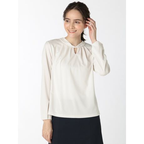 クラシカルな雰囲気に仕上げた、ねじり衿の長袖プルオーバーです。前身頃のタック使いで、ふんわりとした女性らしさを表現しています。