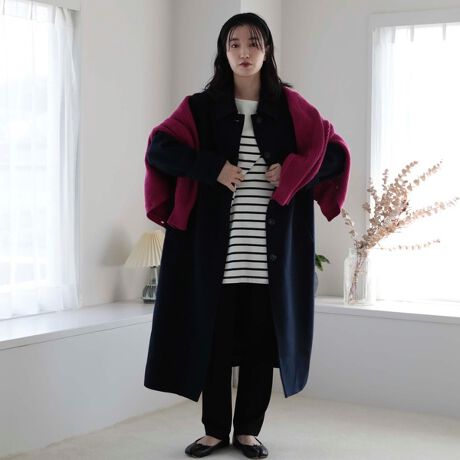 柔らかな風合いと、滑らかさが魅力のコート。すっきりとしたシルエットが新鮮な、万能なステンカラーコートに仕上げました。肩線がドロップしているので肩回りがゆったりと着れニットやスウェットなどの上からでも羽織りやすい1着です。