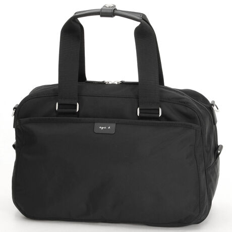 アニエスベーのロゴが入ったフロントのレザーパーツがポイントのボストンバッグ。
