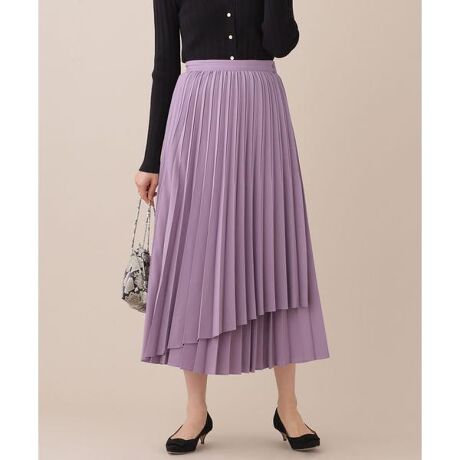 揺れるプリーツが大人の華やぎを演出するサテンスカート。ラップ部分のイレギュラーヘムが裾の動きをプラスし、女性らしさが高まるデザイン。ブラウス合わせでオンスタイルや、冬はニット合わせのコーディネートもおすすめです。
