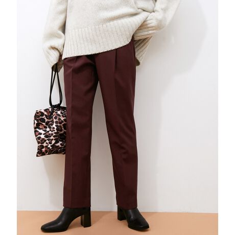 Tシャツ、ブラウス、ニットと、どんなトップスとも相性が良くシーズンレスに使える万能パンツ。仕事用としてはもちろん、カジュアルなトップスにきちんと感を加える一本としてもぜひ。ワンピースなどの、着丈の長いアイテムとレイヤードして、パンツをのぞかせるコーディネートもおすすめ。